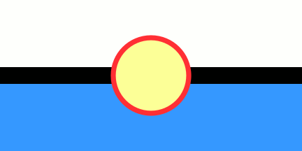 The Blue Mud Bay Sea Rights flag, designed and drawn in September 2008 by Donald Nuwandjali Marawili at the East Arnhem Land Council office for the Blue Mud Bay Decision Celebrations at Yilpara and for the future celebrations and recognition of Indigenous sea rights in the Northern Territory.