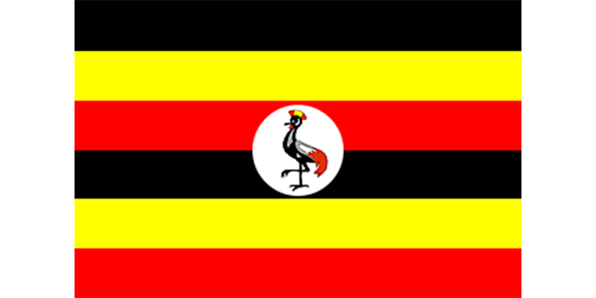 The national flag of Uganda, adopted in 1962, consists of six equal horizontal bands of black (top), yellow, red, black, yellow, and red (bottom); a white disc is superimposed at the centre and depicts the national symbol, a grey crowned crane, facing the hoist side. The three colours are representative of Native ethnic groups of Africa (black), Africa's sunshine (yellow), and African brotherhood (red being the colour of blood, through which all Africans are connected). The grey crowned crane is fabled for its gentle nature and was also the military badge of Ugandan soldiers during British rule. The raised leg of the crane symbolises the forward movement of the country.