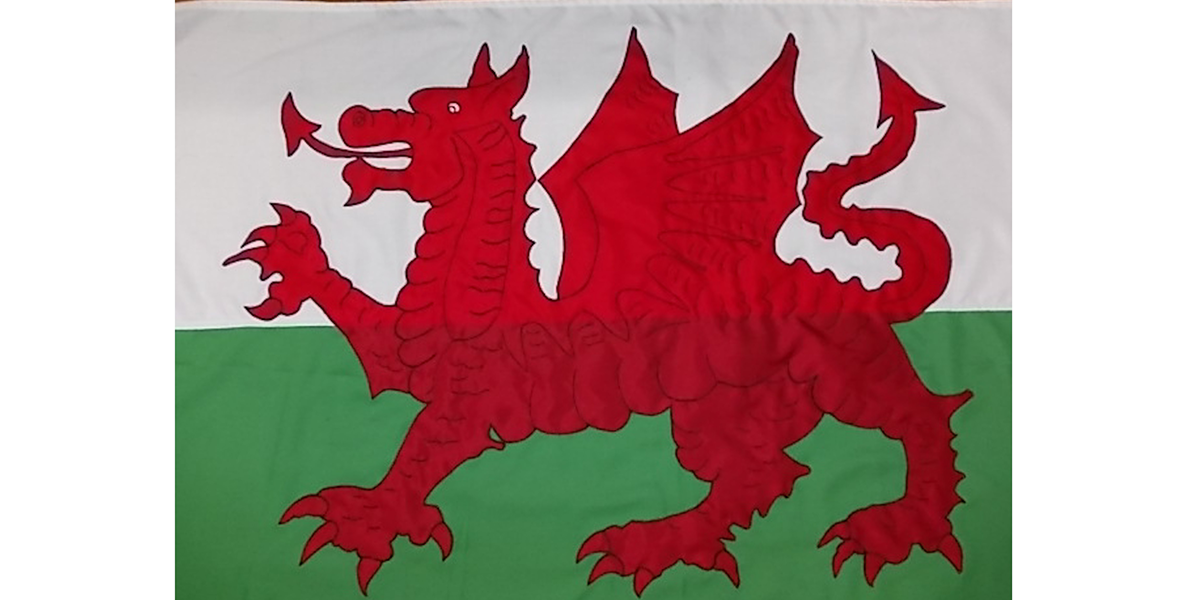The national flag of Wales consists of a red dragon passant on a green and white field, and was adopted in 1959.