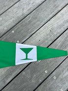 The "Gin Pennant" is a traditional maritime flag once flown to signal that the bar was open aboard ship an invitation for officers to come aboard for a drink. Today, it’s used both at sea and on land as a friendly visual cue that the bar is open and good company awaits.
