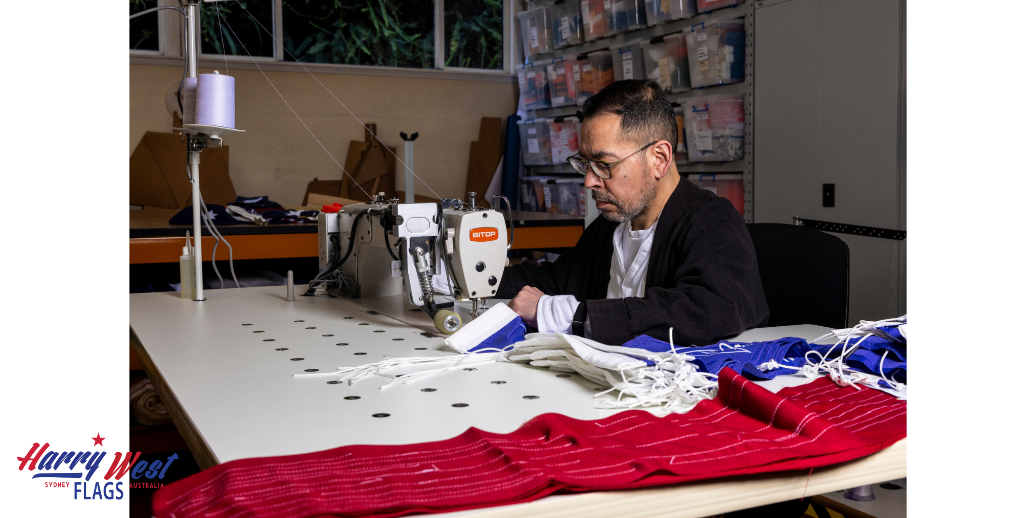 Harry West Flags specializes in custom fully sewn flags, crafted using the traditional appliqué process. Each flag is100% handmade, ensuring unmatched quality, durability, and elegance. Our skilled flag makers carefully layer fabric and apply precision stitching to create intricate, long-lasting designs that stand the test of time.