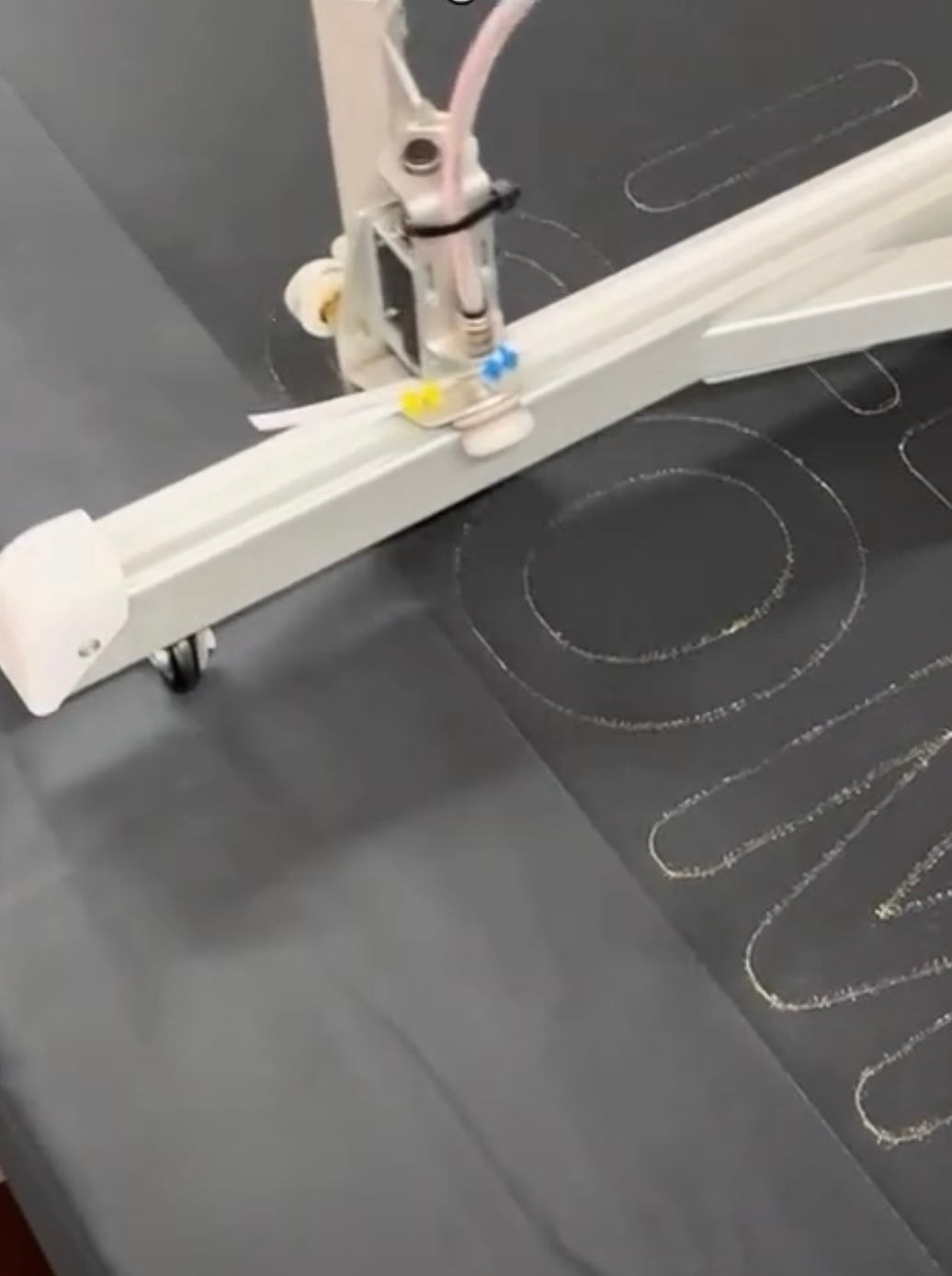 Design elements are accurately traced onto fabric, serving as guides for cutting and assembly.