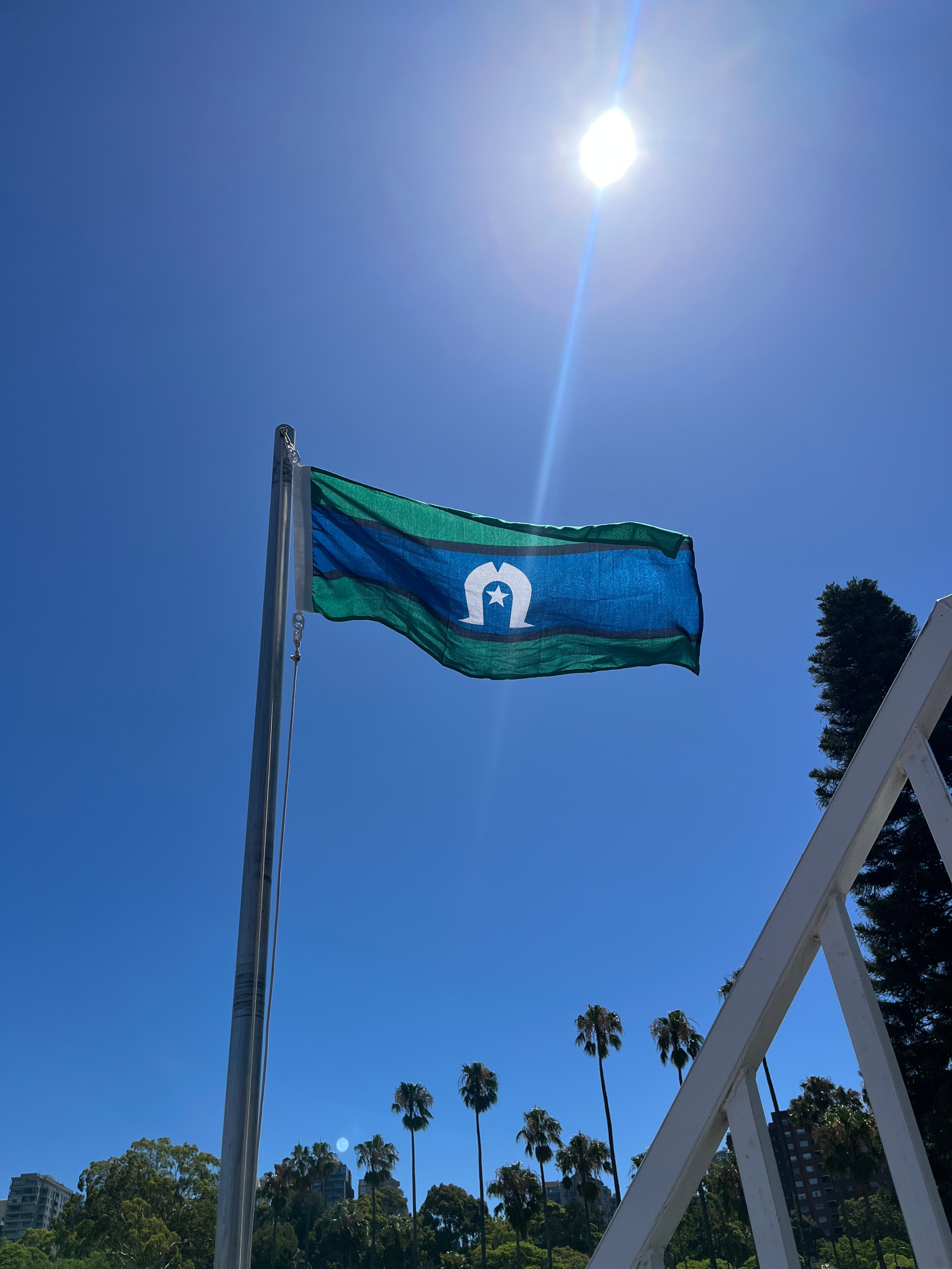 The national flag of the Argentine Republic is a triband, composed of three equally wide horizontal bands coloured light blue and white. There are multiple interpretations on the reasons for those colors. The full flag featuring the sun is called the Official Ceremonial Flag (Spanish: Bandera Oficial de Ceremonia). The flag without the sun is considered the Ornamental Flag (Bandera de Ornato). While both versions are equally considered the national flag, the ornamental version must always be hoisted below the Official Ceremony Flag. In vexillological terms, the Official Ceremonial Flag is the civil, state and war flag and ensign, while the Ornamental Flag is an alternative civil flag and ensign. There is controversy of the true colour of the first flag between historians and the descendants of Manuel Belgrano between blue and pale blue.