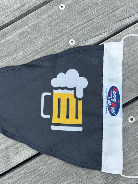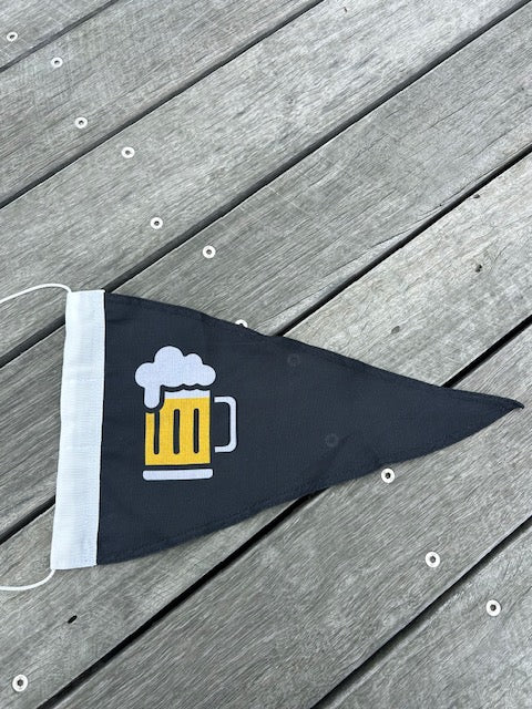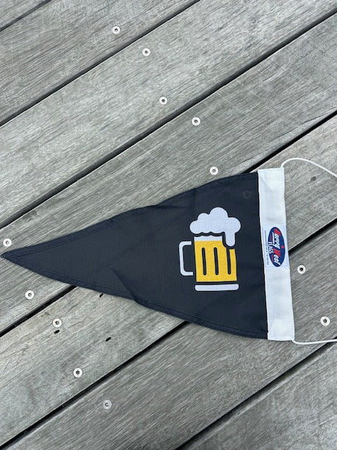 Beer Pennant is a fun take on the traditional “Gin Pennant”, once used at sea to signal that the bar was open and officers were welcome aboard for a drink. The Beer Burgee carries on that spirit - a cheerful signal for beer lovers on land or sea to come together and share a brew.