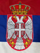 The flag of Serbia, is a tricolour consisting of three equal horizontal bands, red on the top, blue in the middle, and white on the bottom. The same tricolour, in altering variations, has been used with their coat of arms left of centre. The current form of the flag was adopted in 2004 and slightly redesigned in 2010.