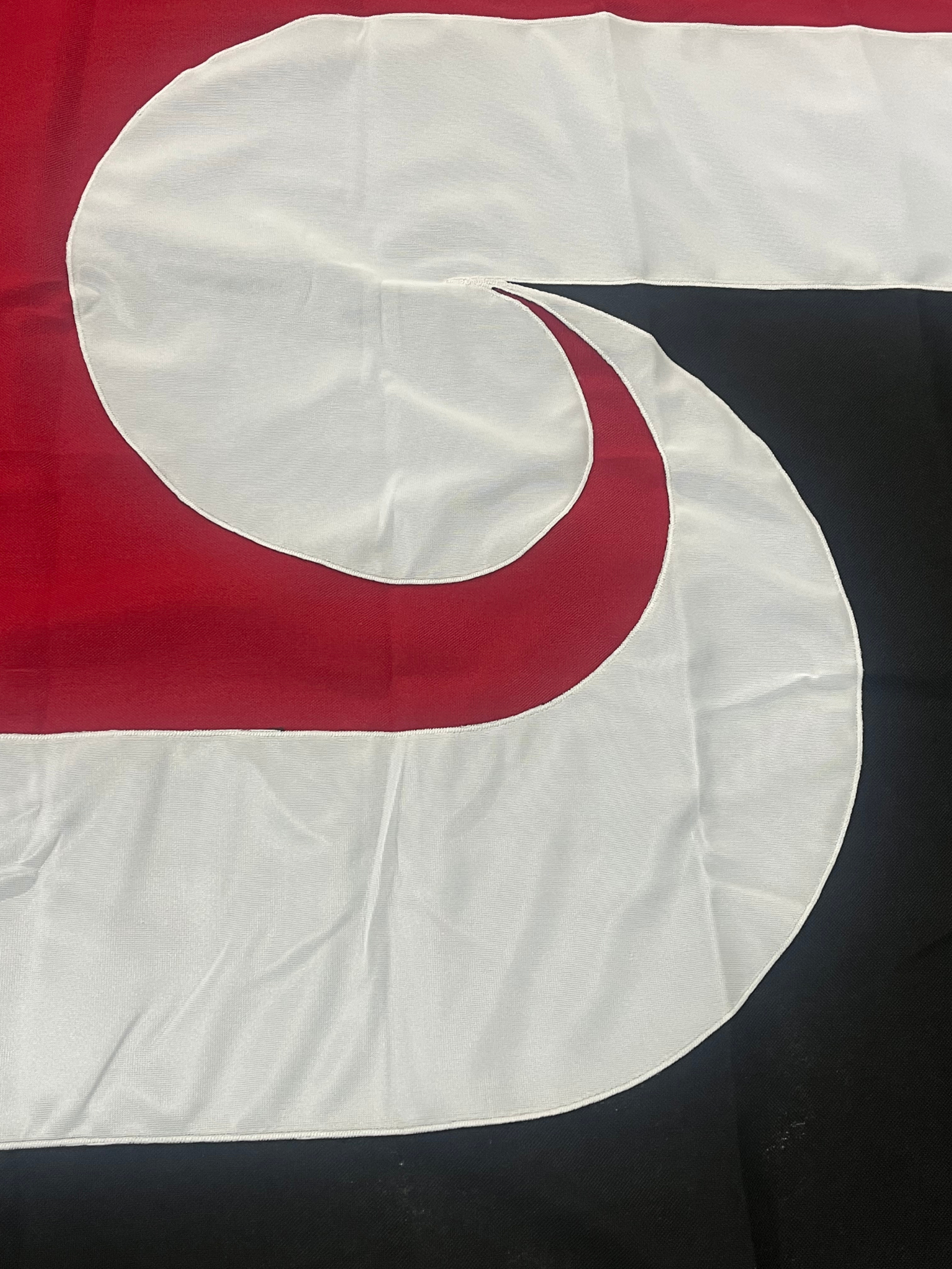 The national Māori flag uses the national colours of New Zealand: black, red ochre, and white or silver. Each of the colours references a realm in the creation story of Māori mythology: black is Te Korekore (potential being), red is Te Whai Ao (coming into being), and white is Te Ao Mārama (the realm of being and light). The design features a koru (Māori for fern frond), a common design in Māori tattoo and sculpture. It symbolises renewal and hope for the future. The white part of the flag is also a reference to the Māori name for New Zealand, Aotearoa, or "Land of the Long White Cloud."